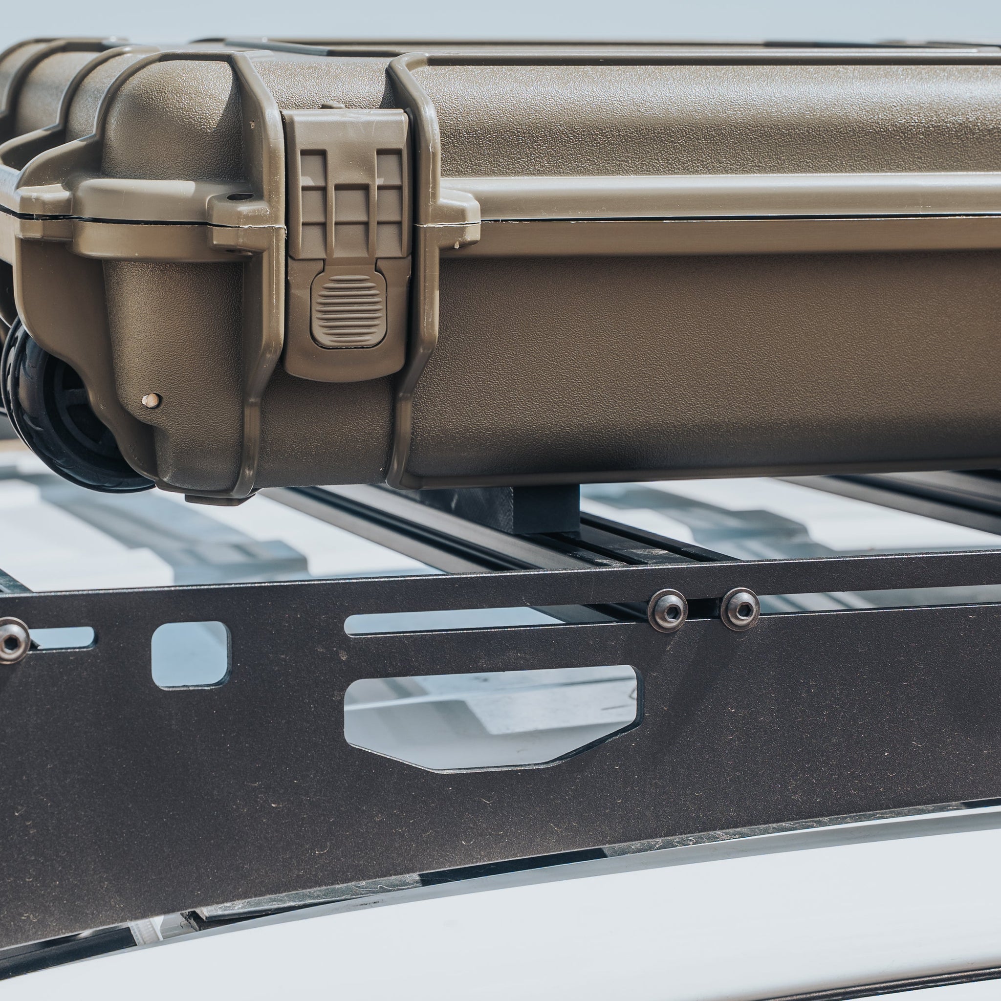 Keep your case and mind stable! Attaches to you roof rack, bed rack, or any flat...
