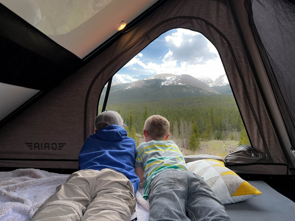 Setting up the tent is quick and effortless with gas struts and durable hinges for lasting use. Unlike many other rooftop tents, this one features a "Pass-Through" design for easy access from your GAIA truck cap. Similar to the truck cap, the GAIA camper includes integrated LED lights for improved visibility inside the tent at night.